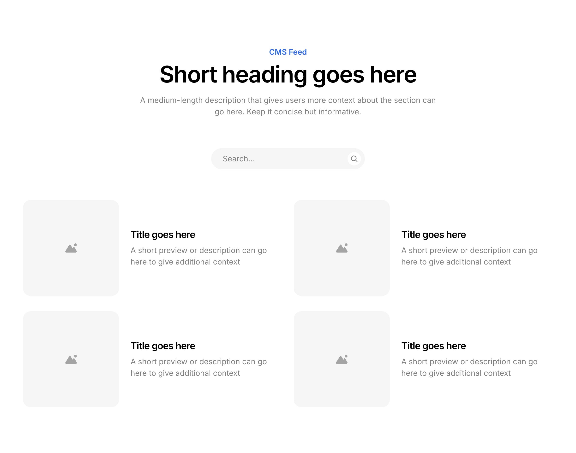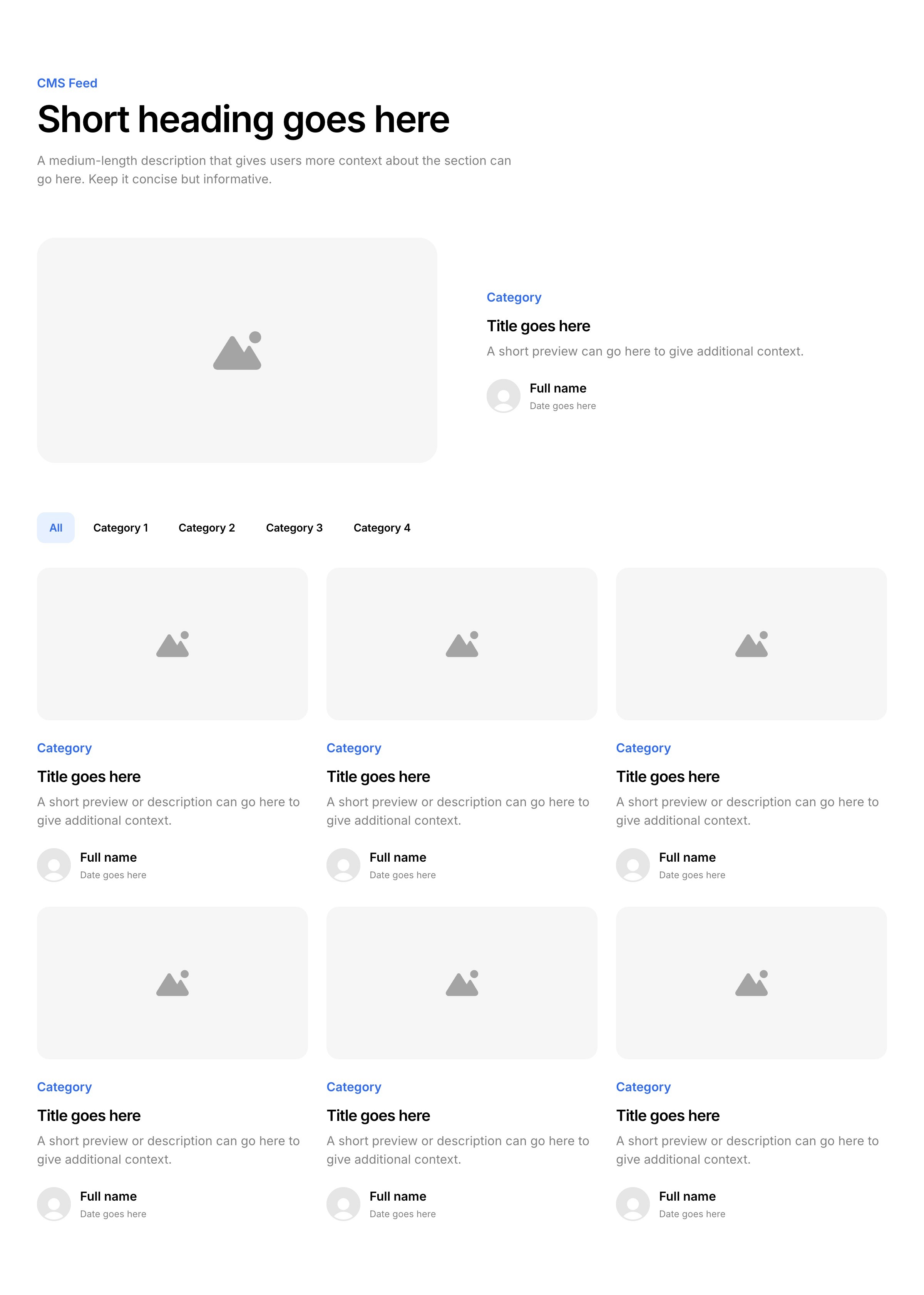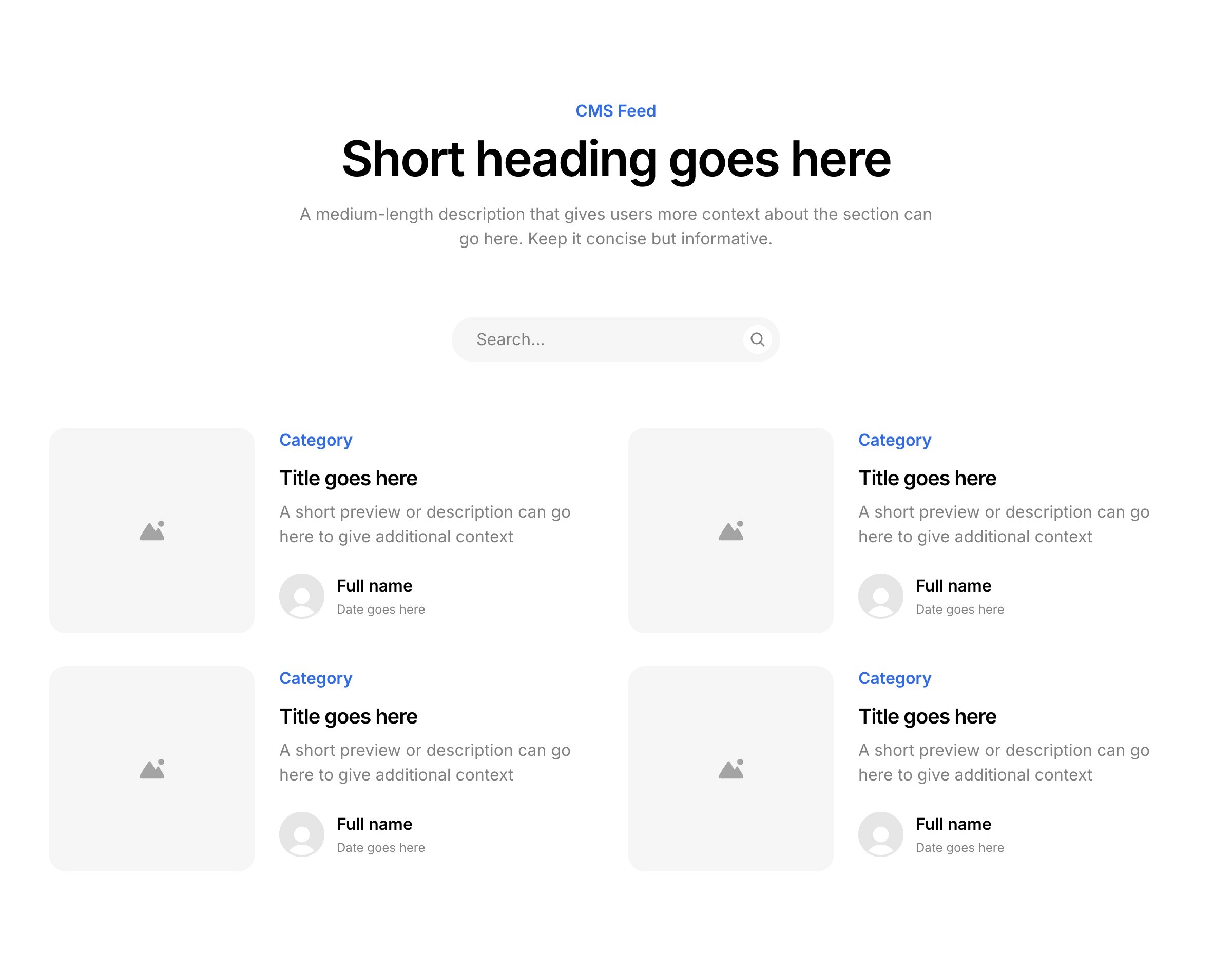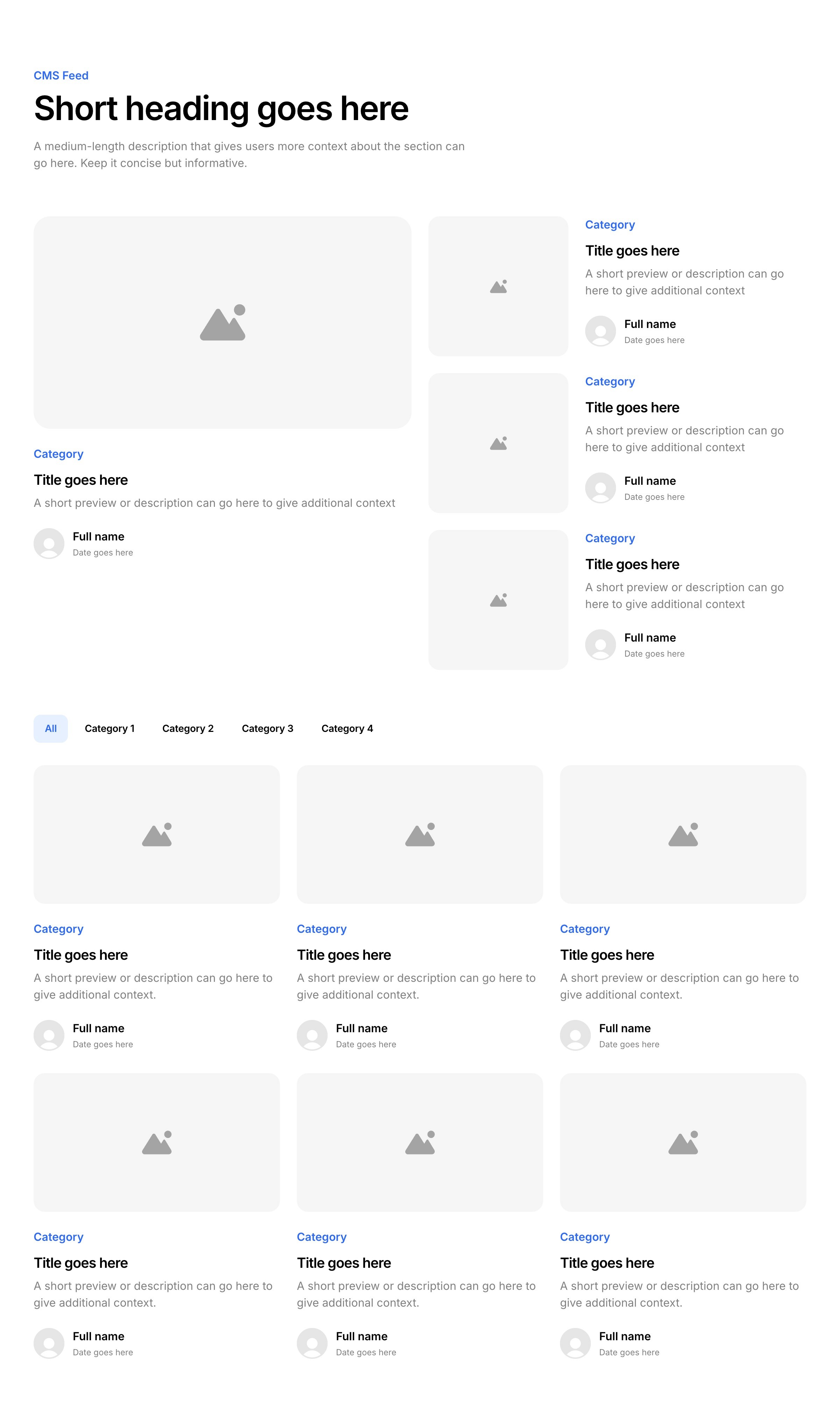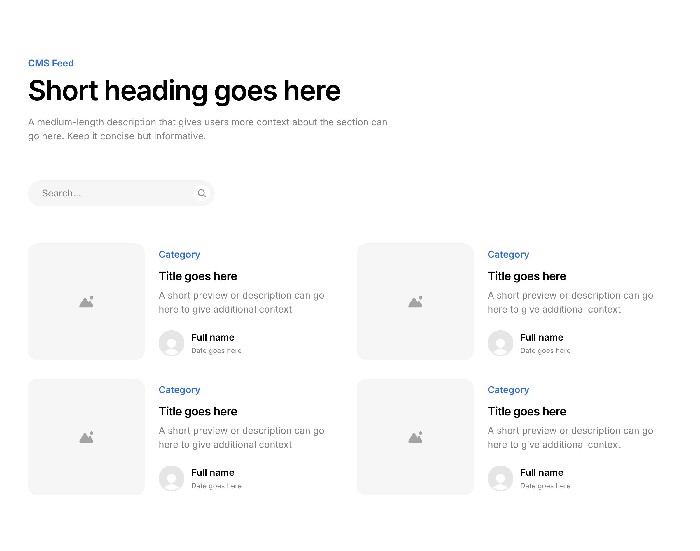 CMS feed sections display dynamic content from a CMS to help visitors browse and filter entries.