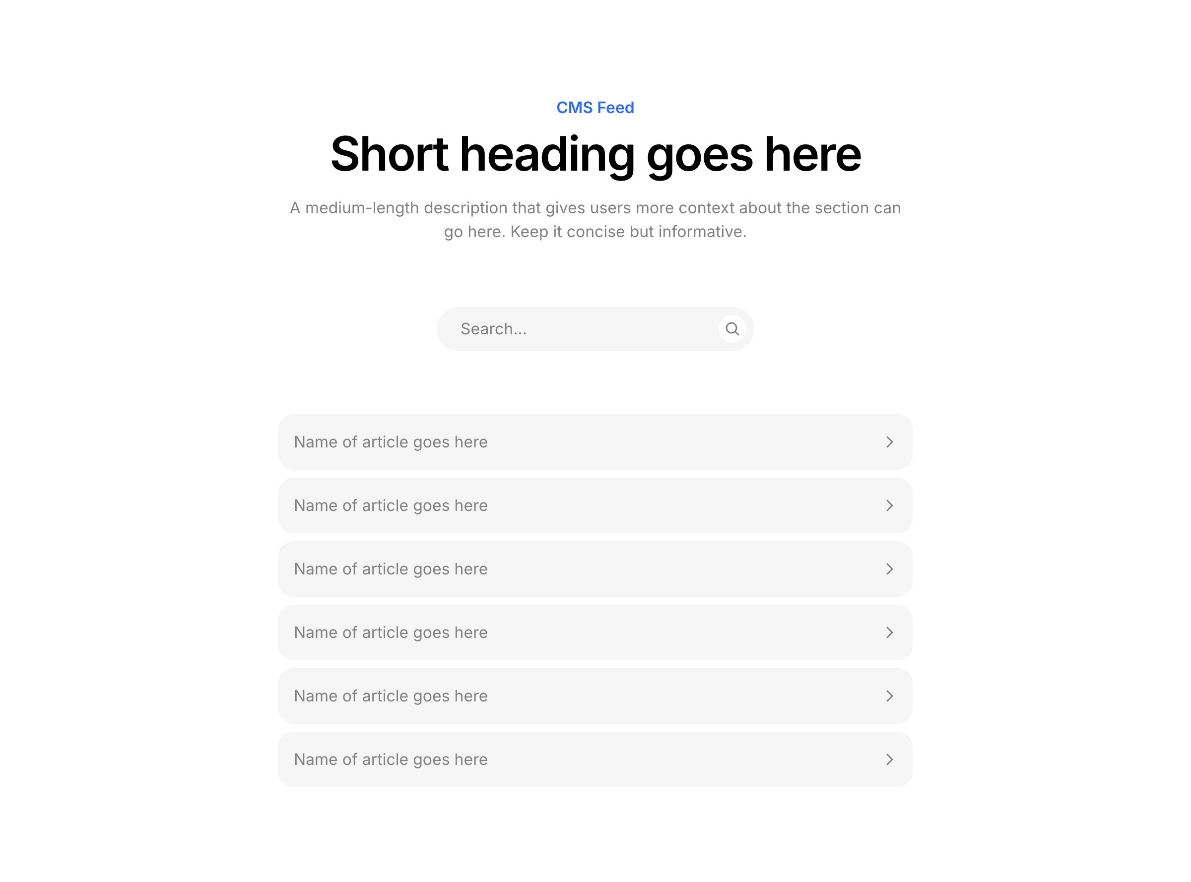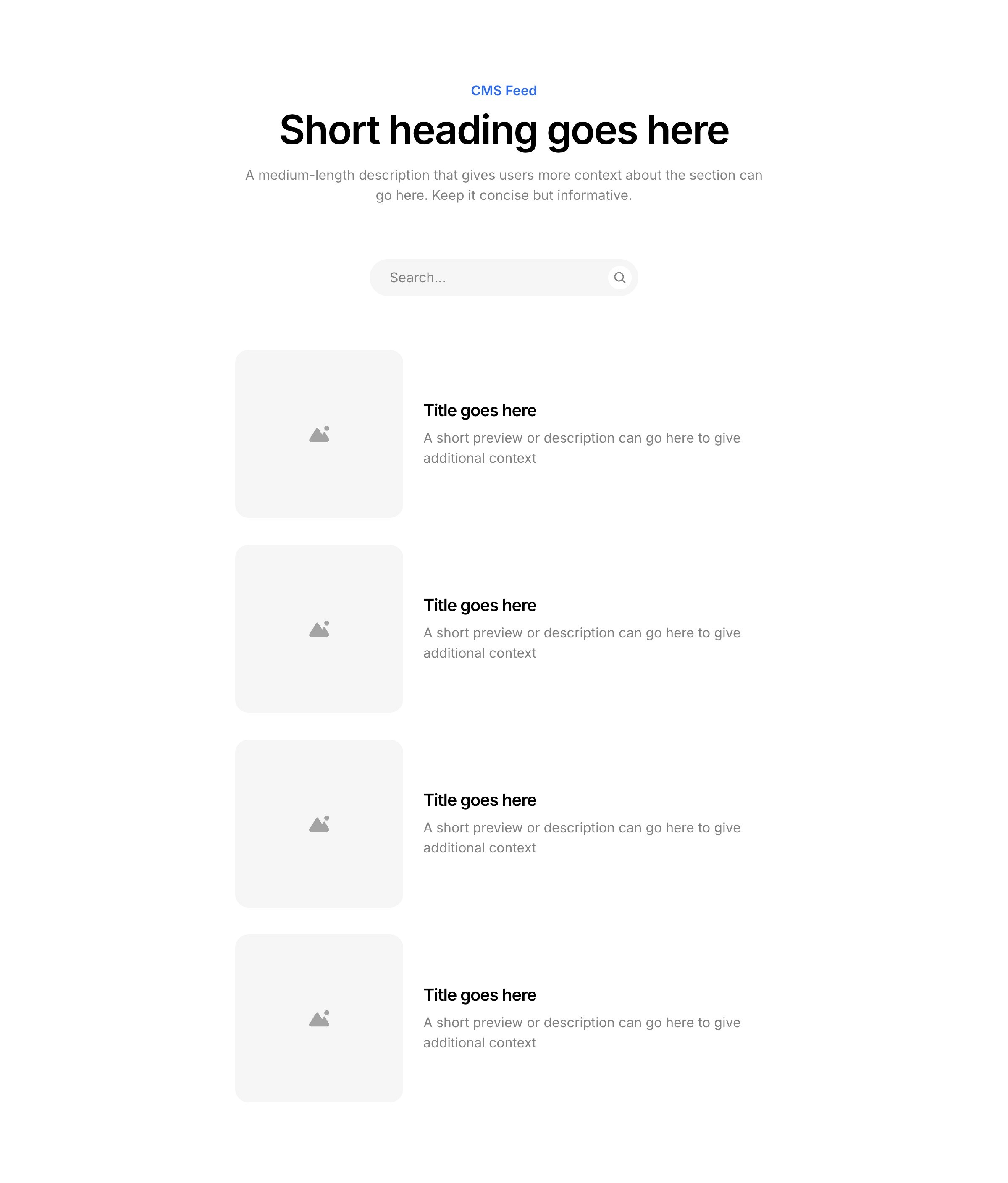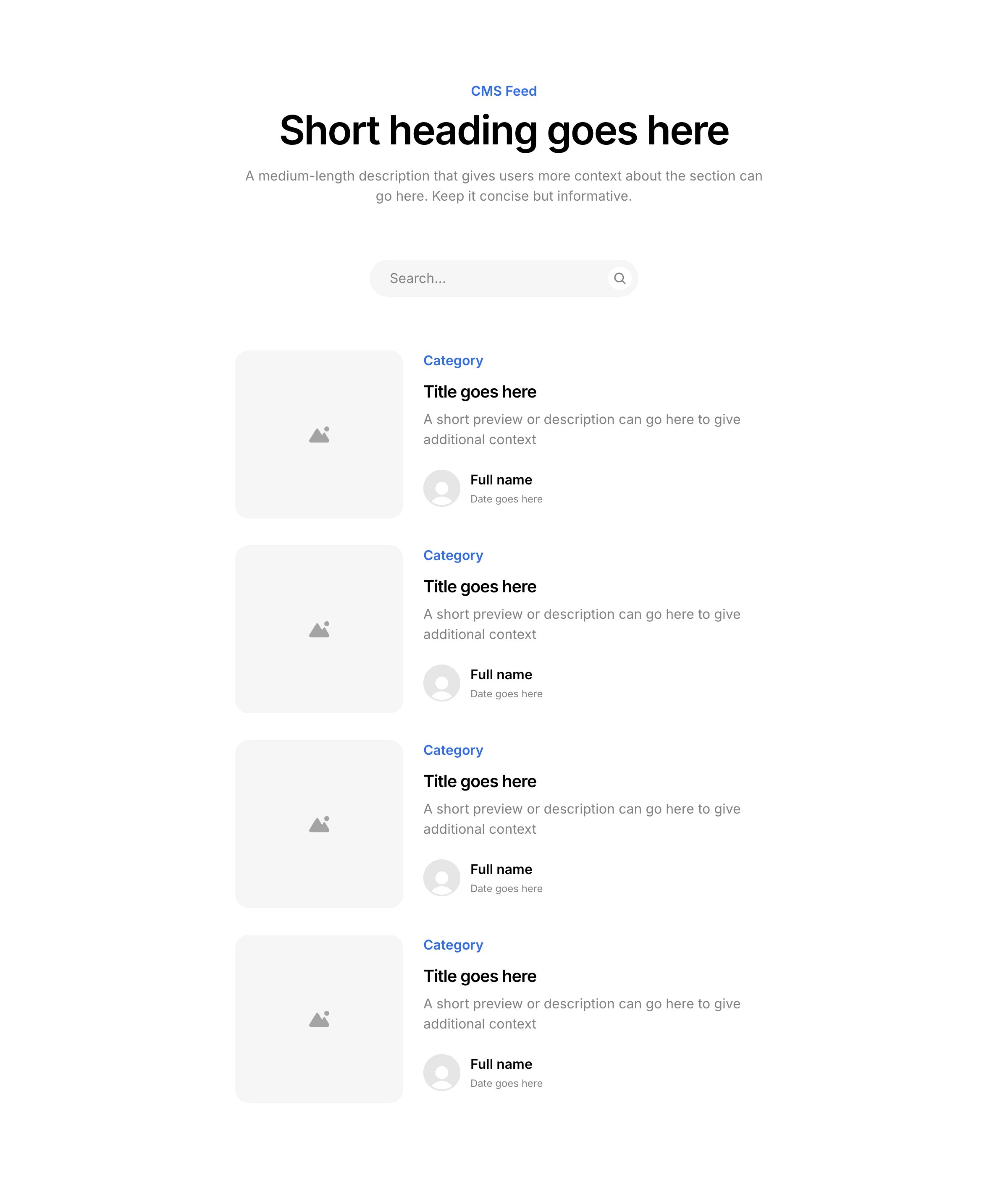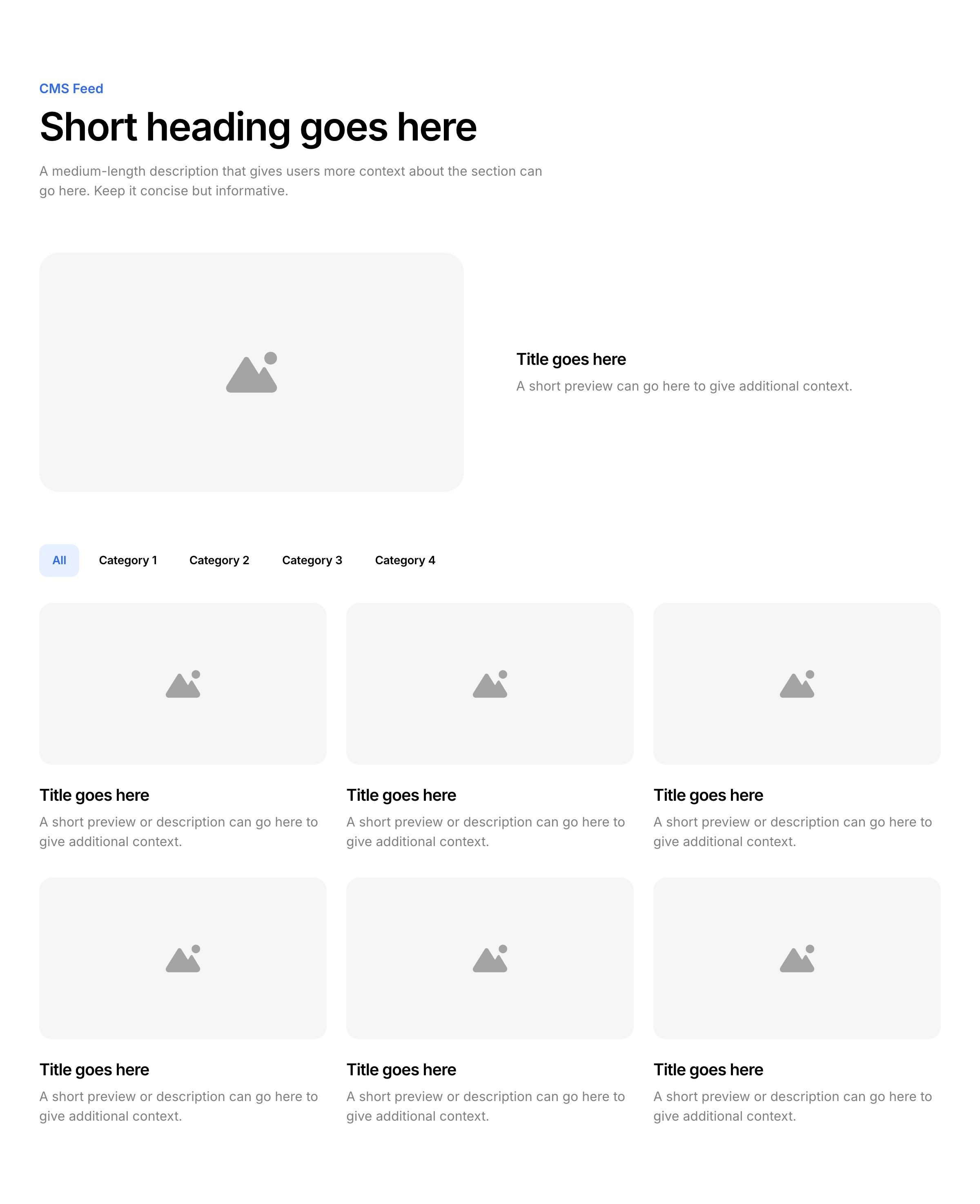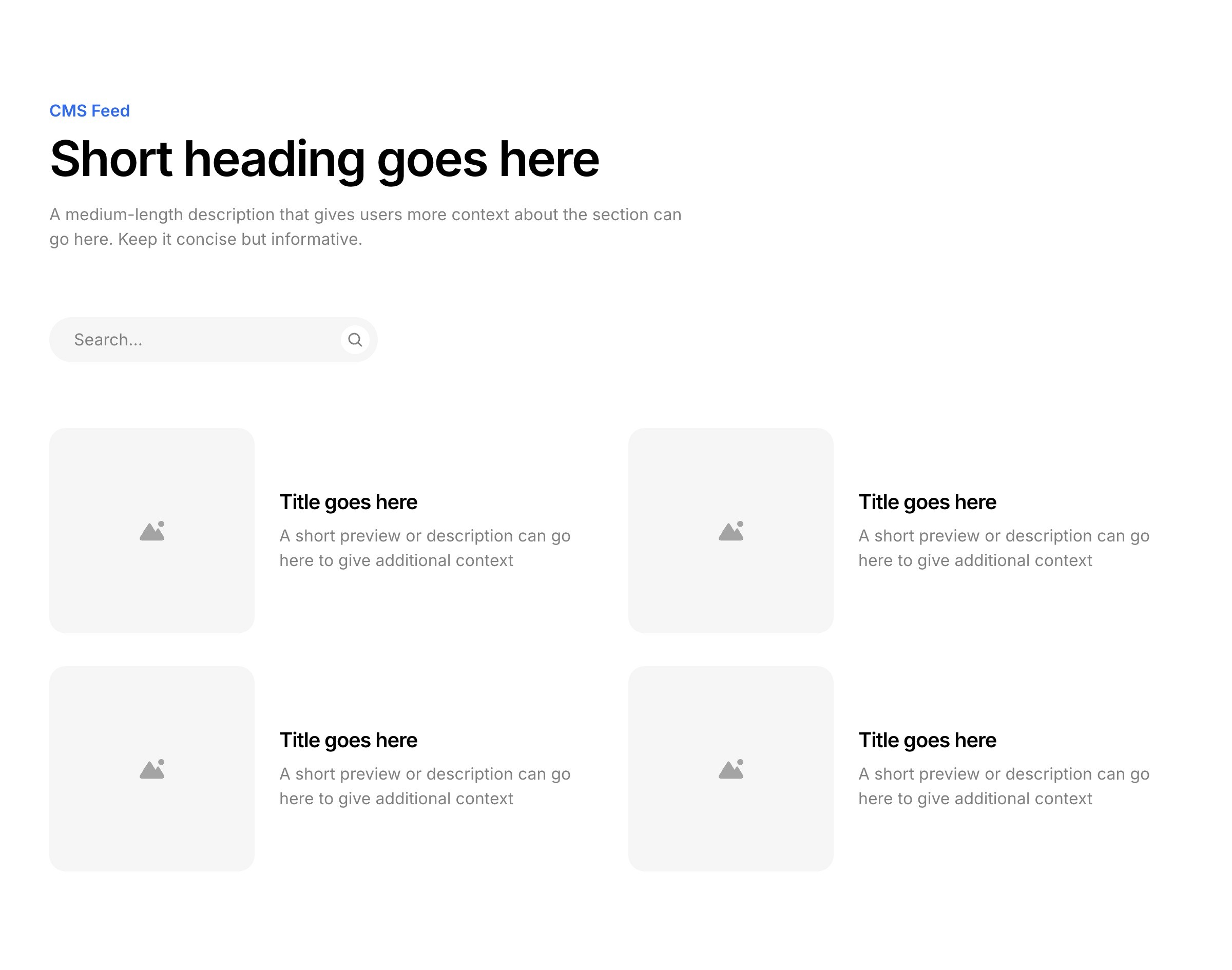 CMS feed sections display dynamic content from a CMS to help visitors browse and filter entries.