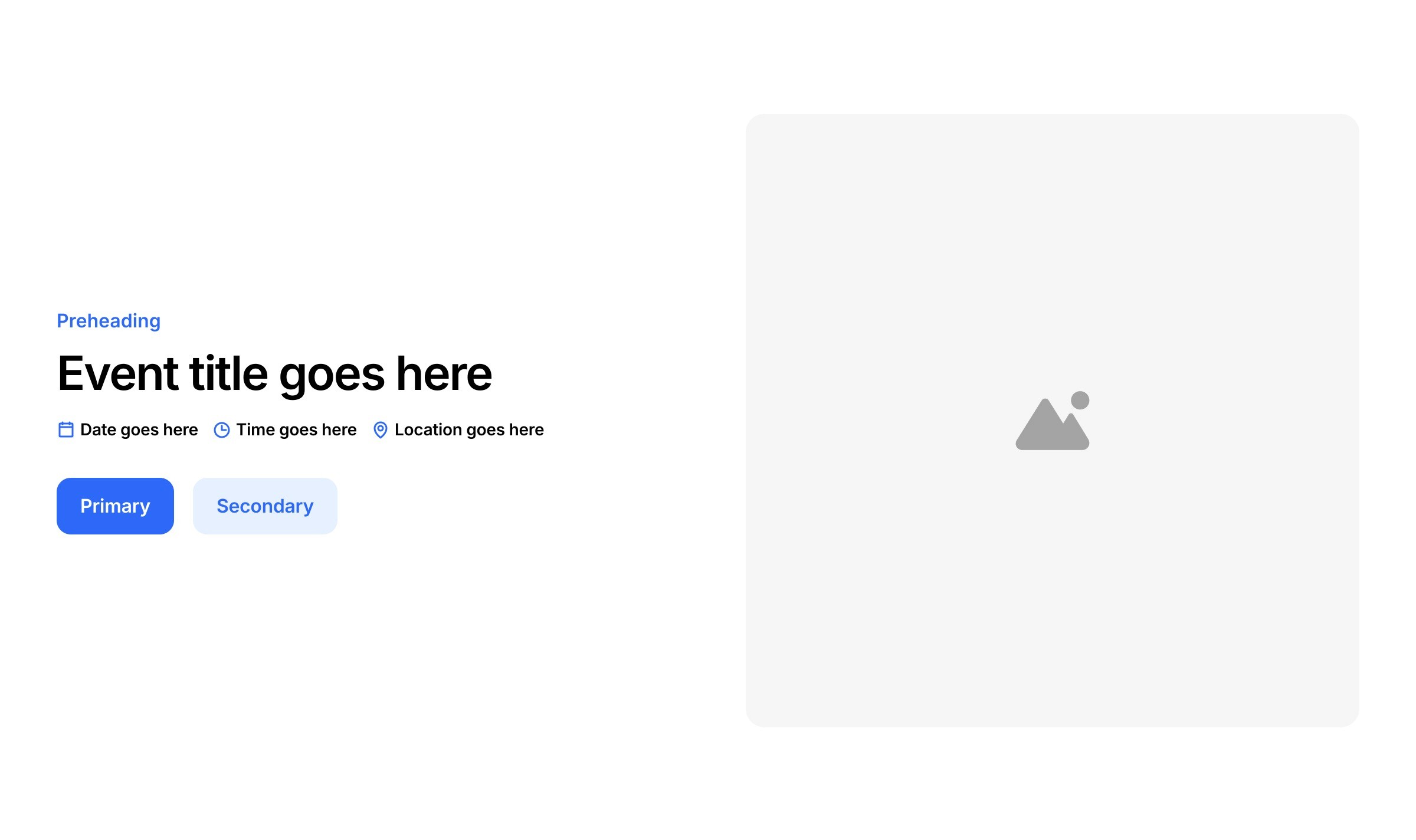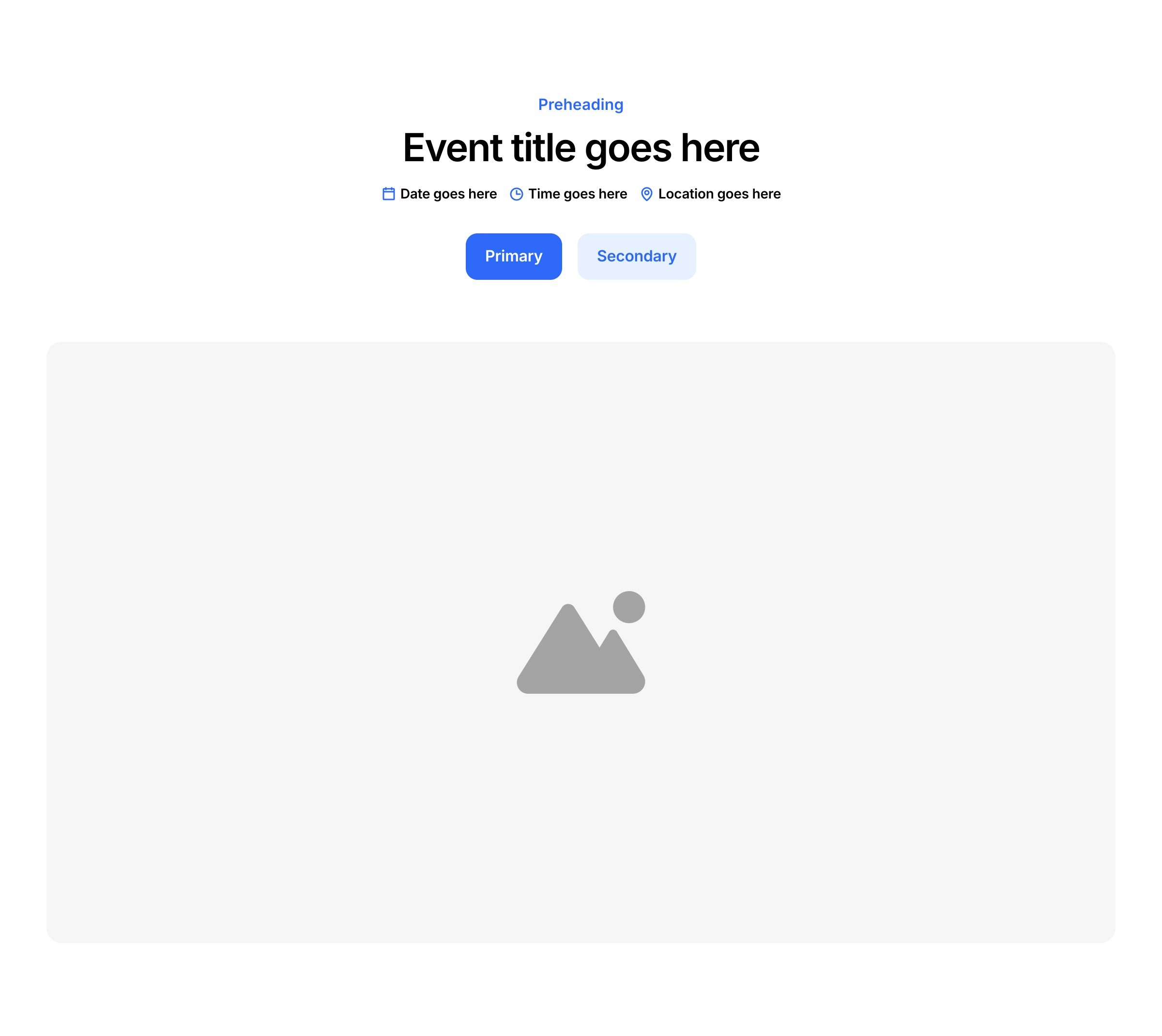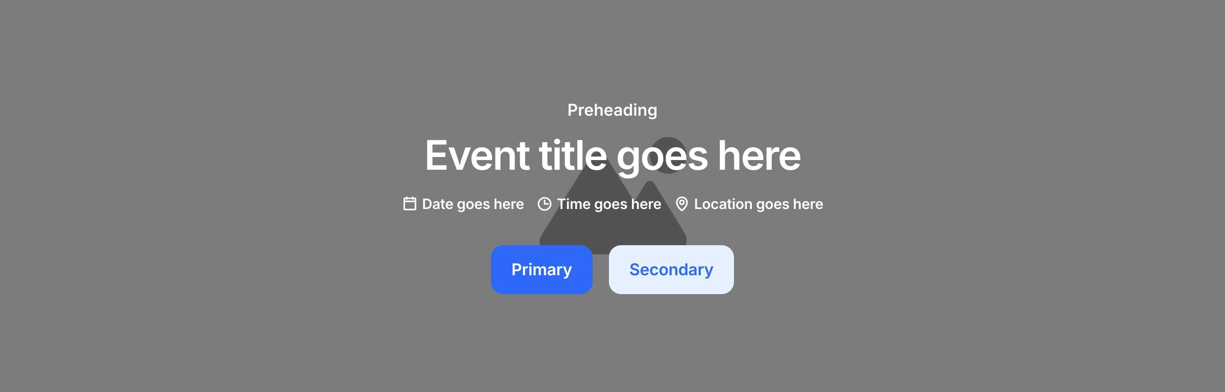 Event header sections introduce an event’s title, date, location, and key details for visitors