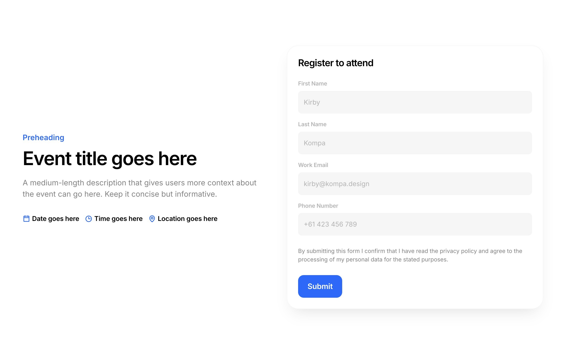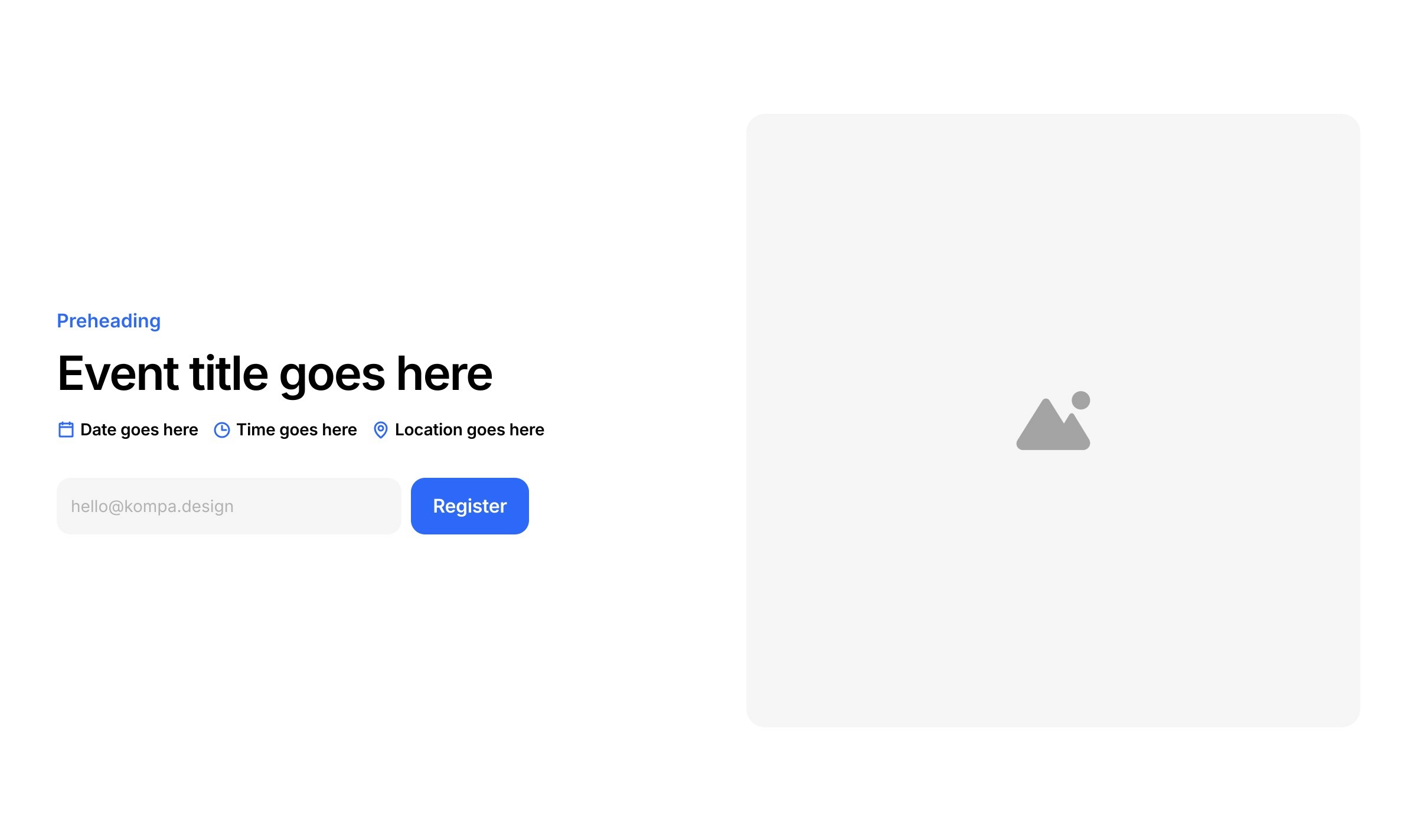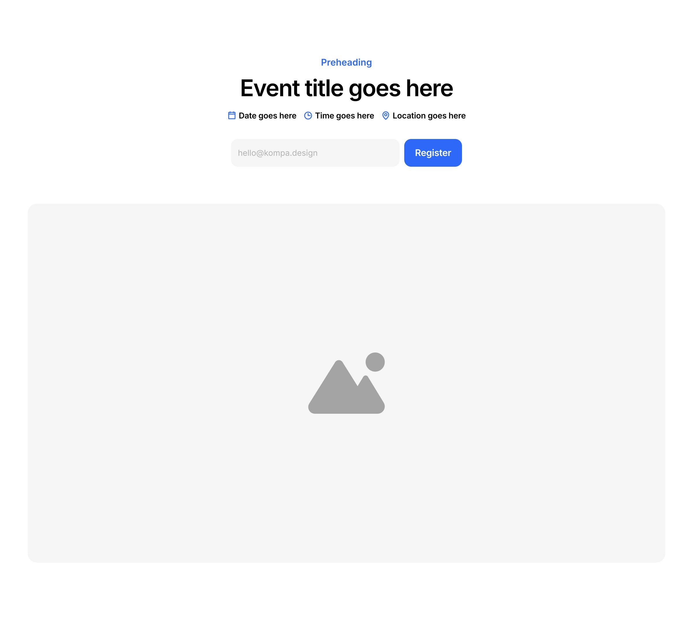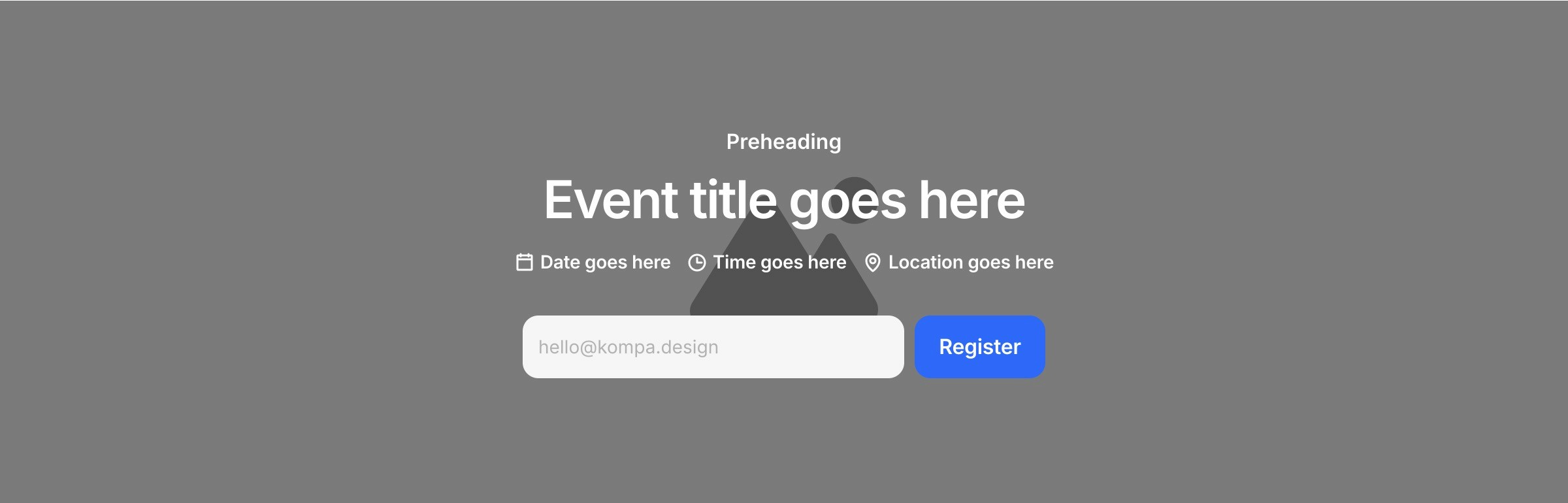 Event header sections introduce an event’s title, date, location, and key details for visitors