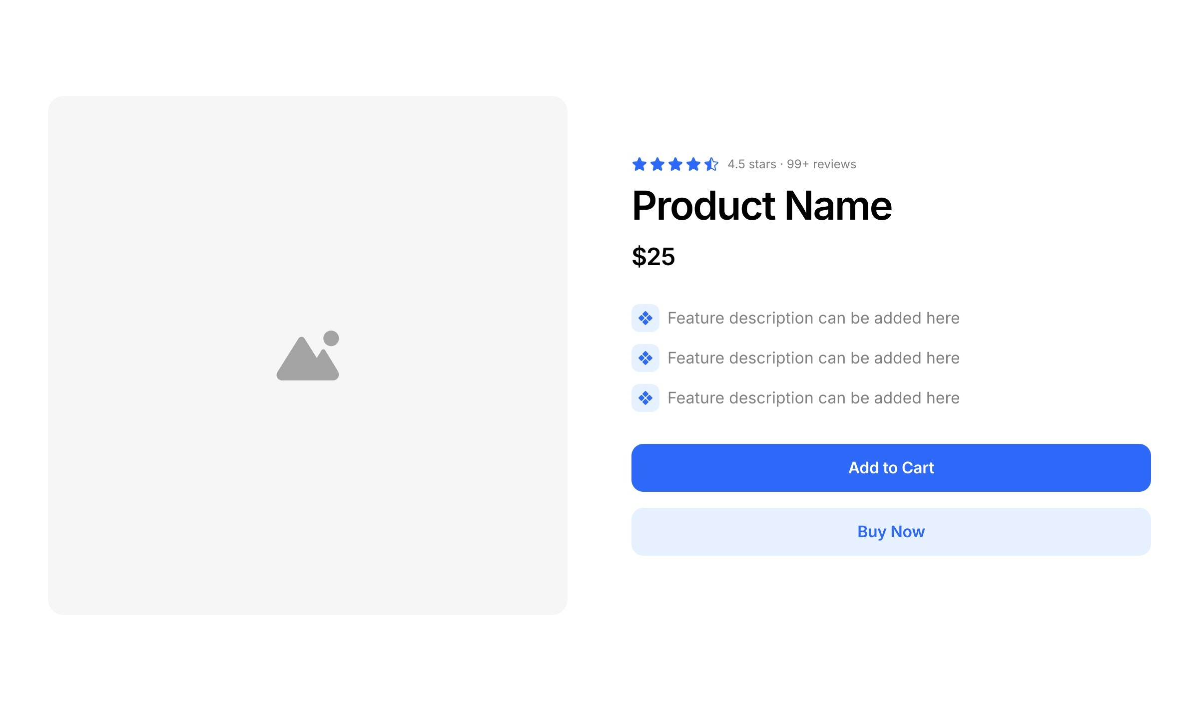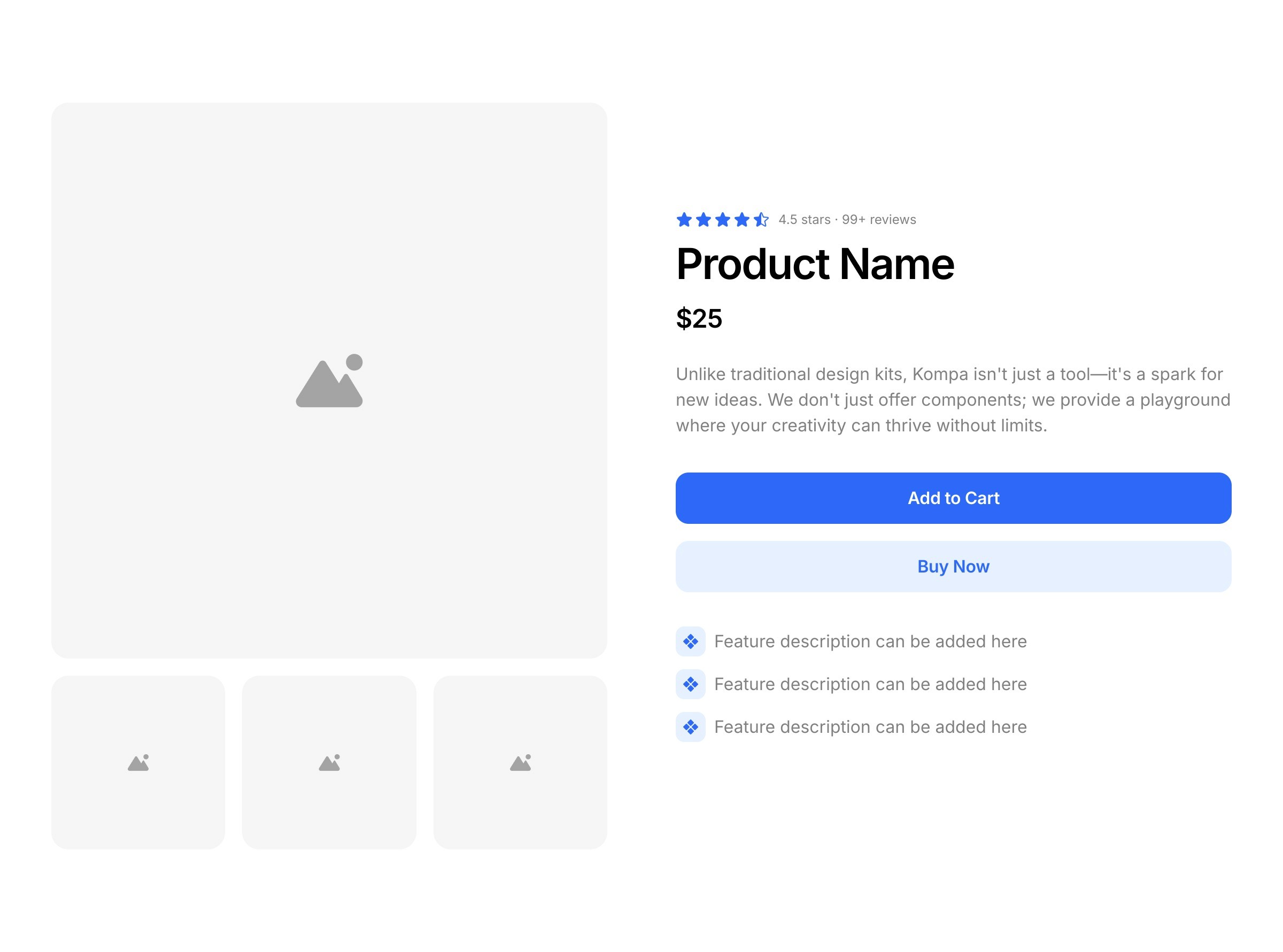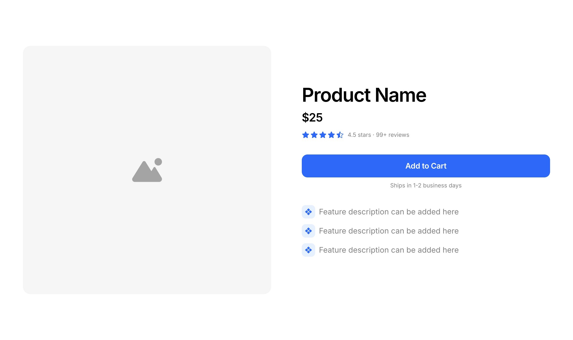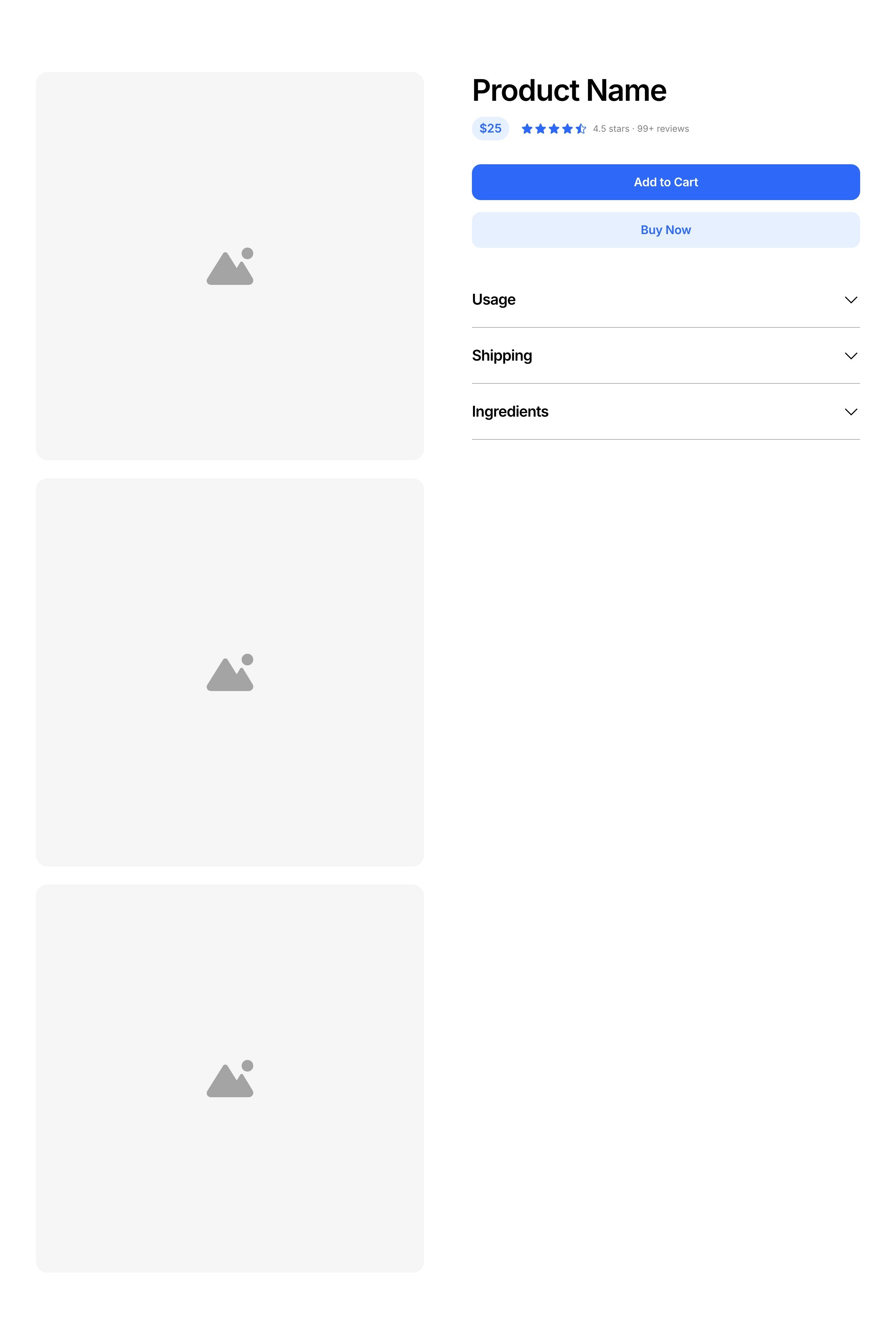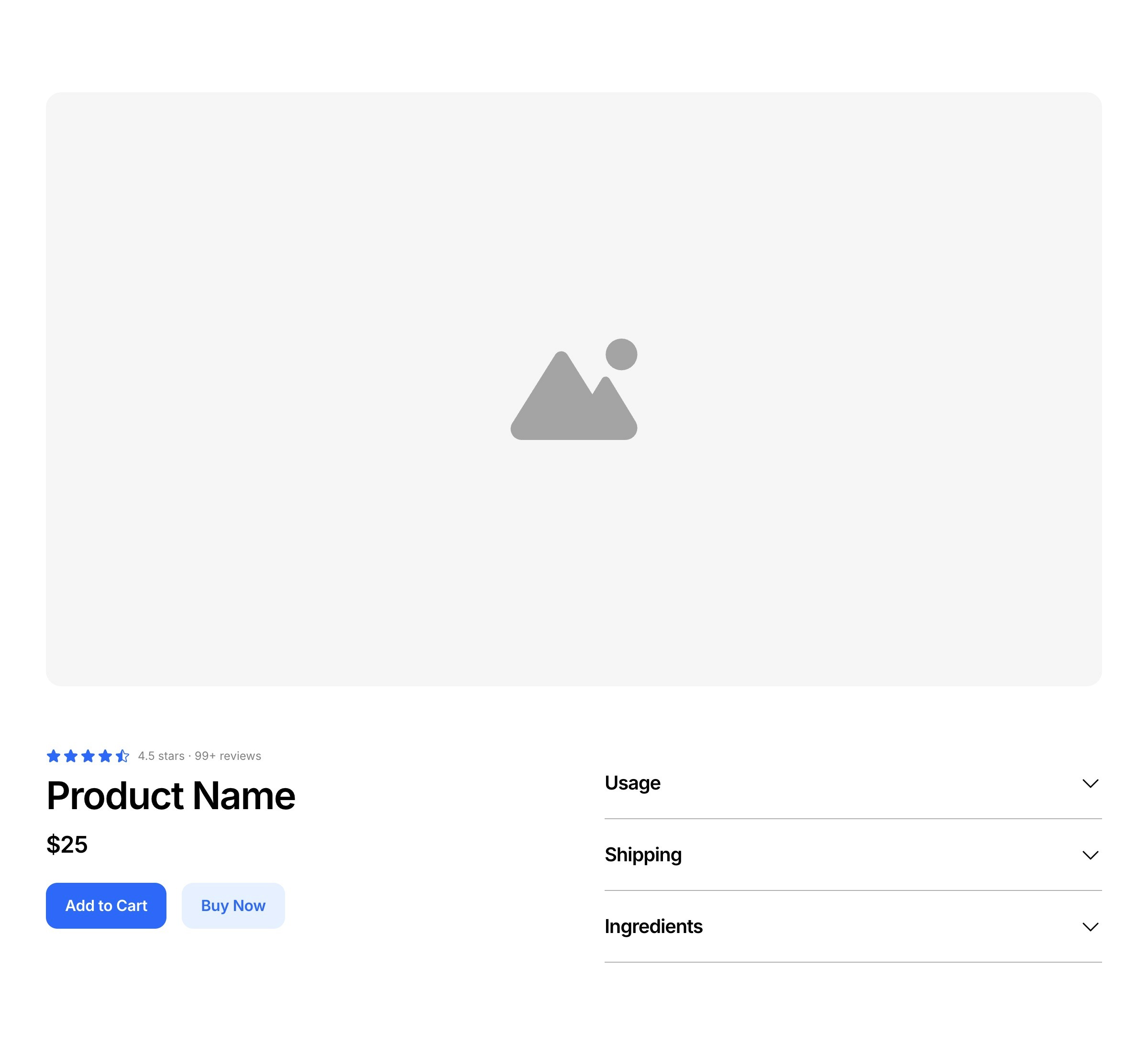 Store header sections introduce a product with its title, price, and key purchase details for visitors.