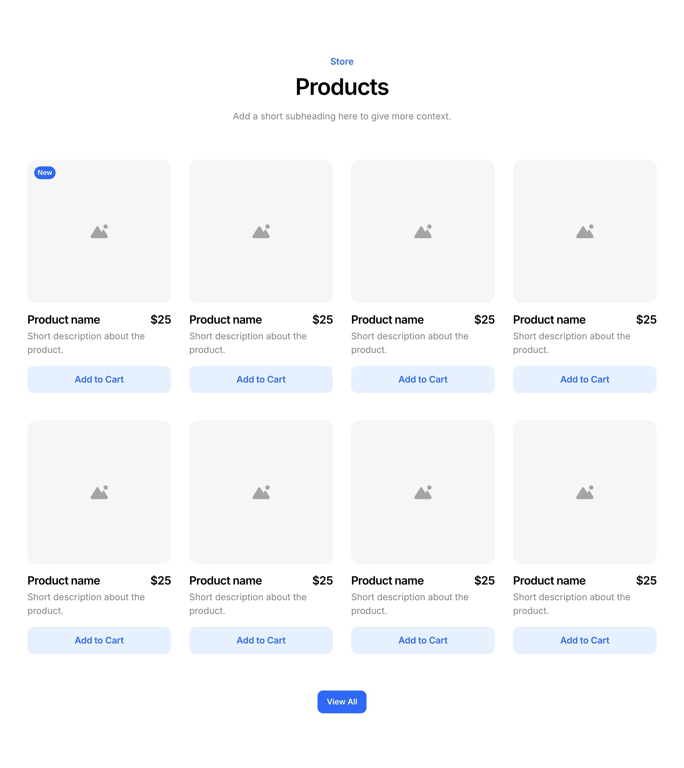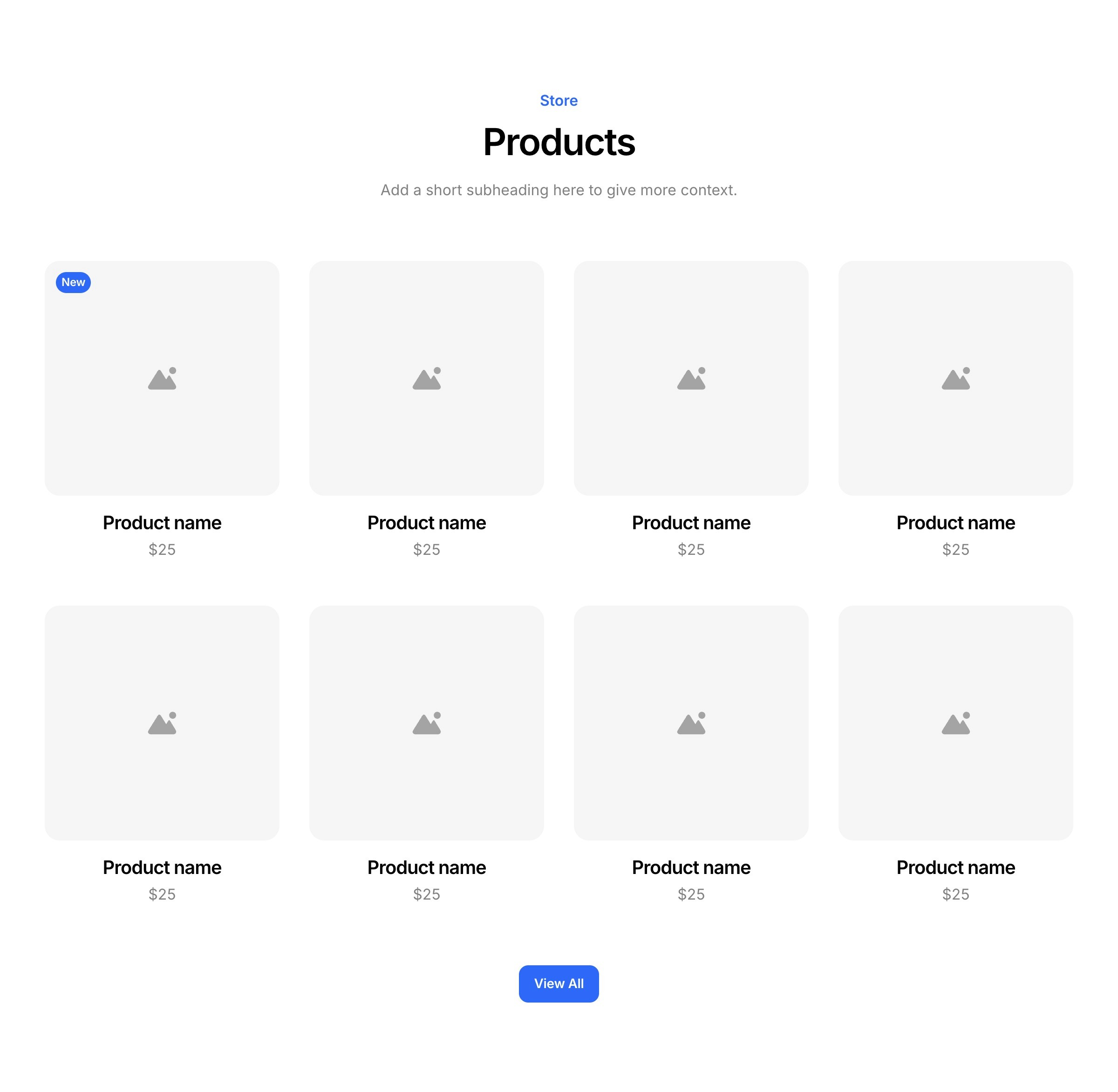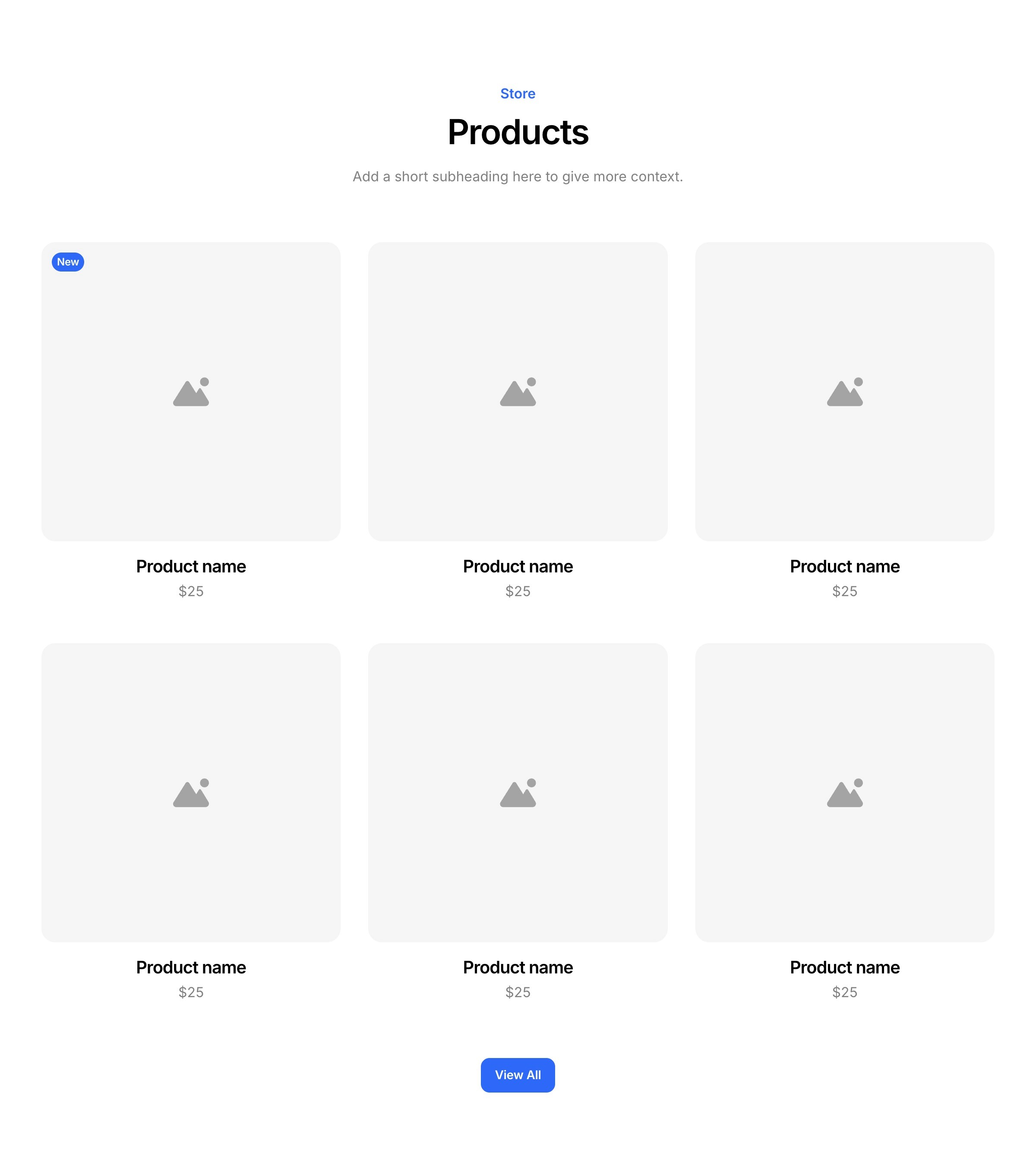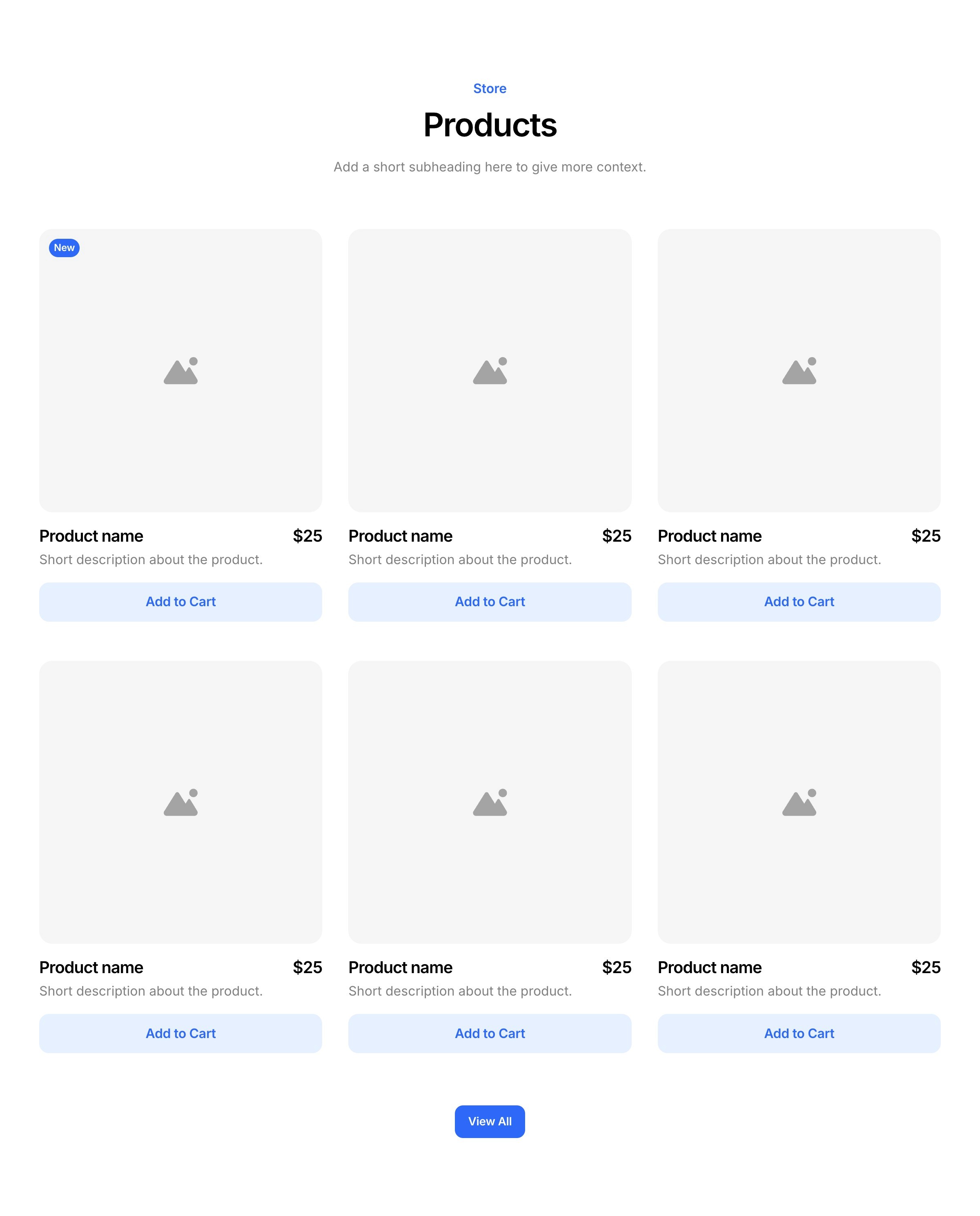 Store sections display a collection of products with pricing and purchase options for visitors.