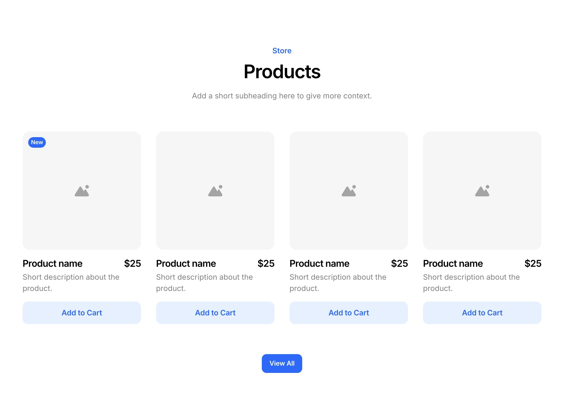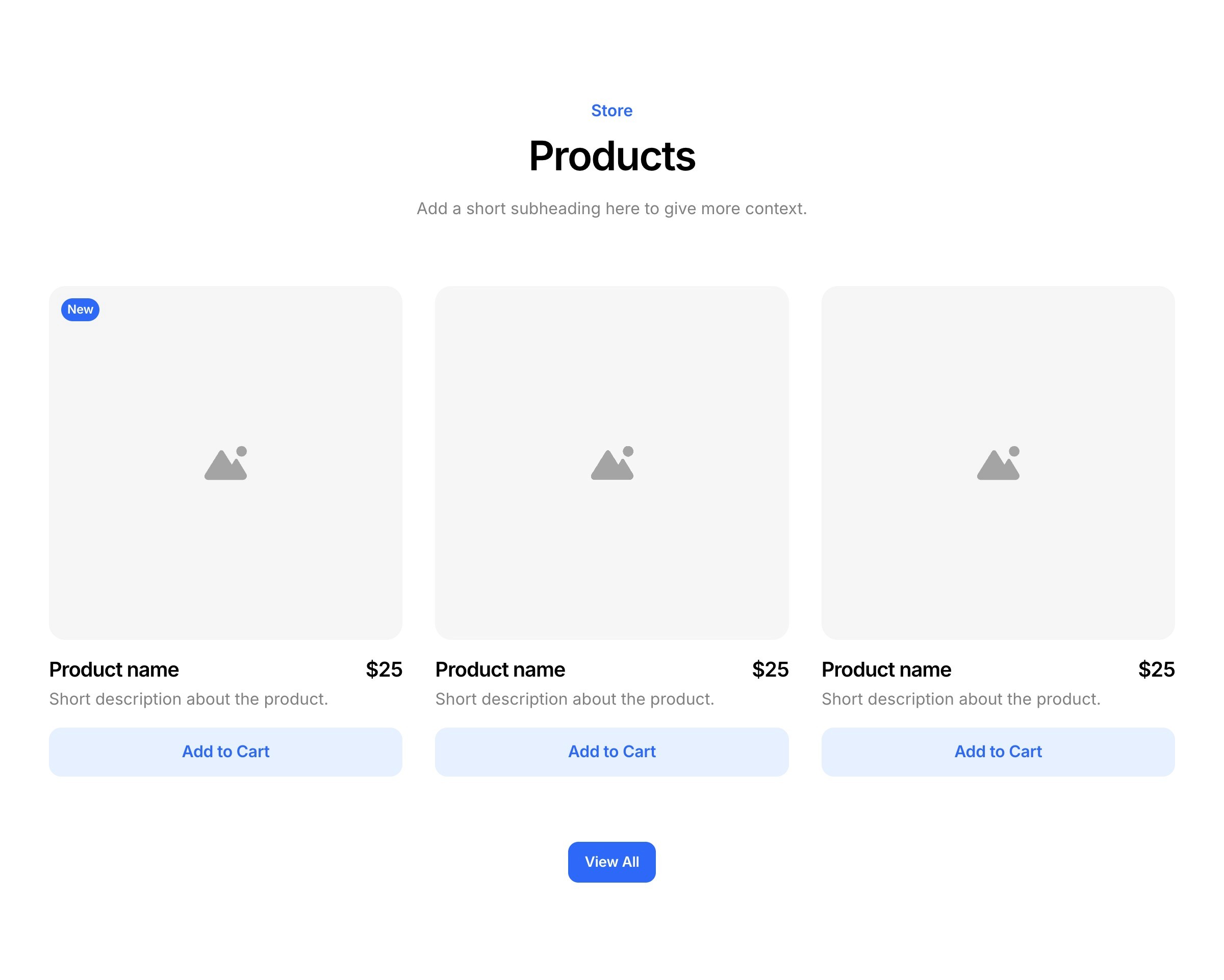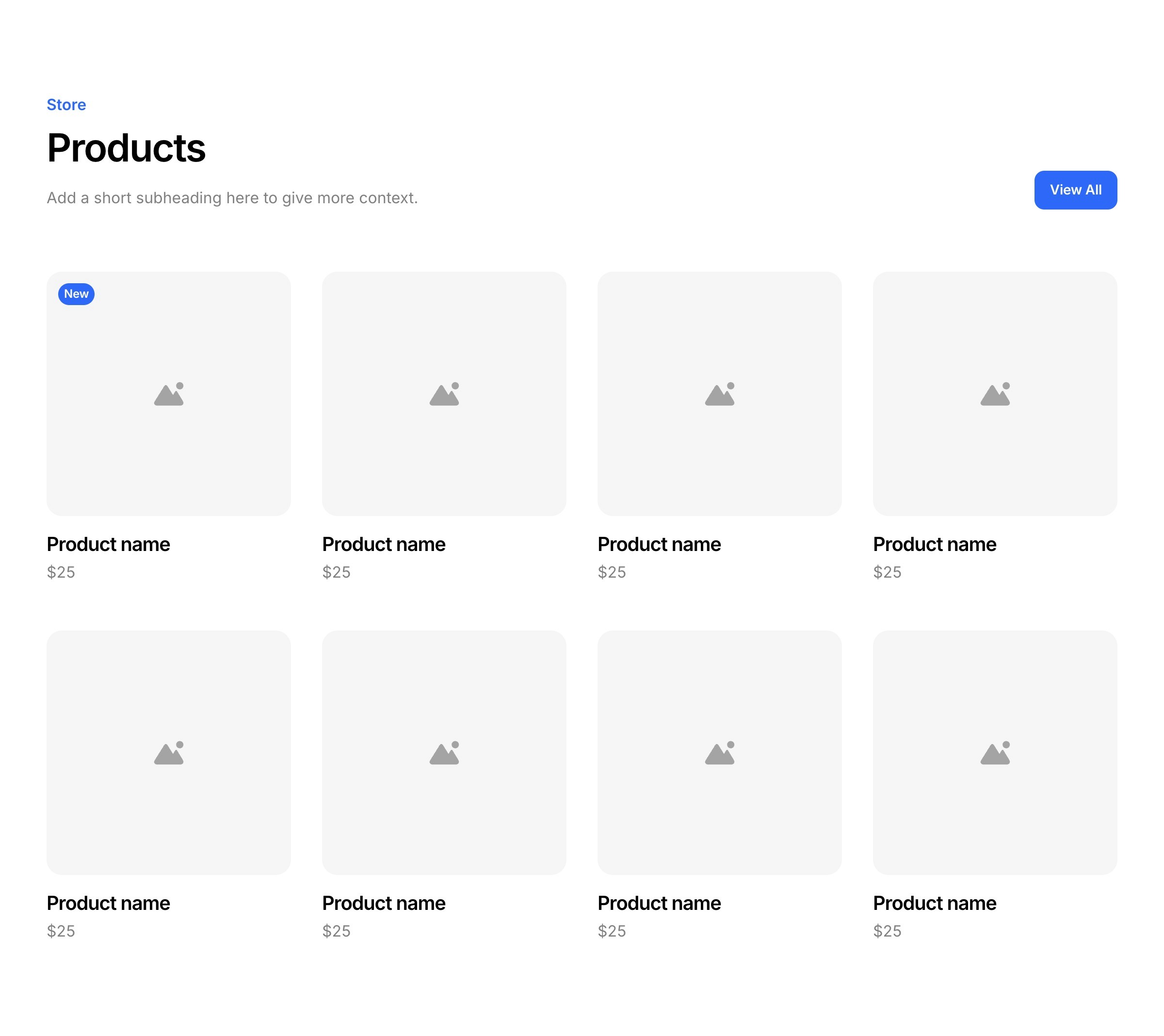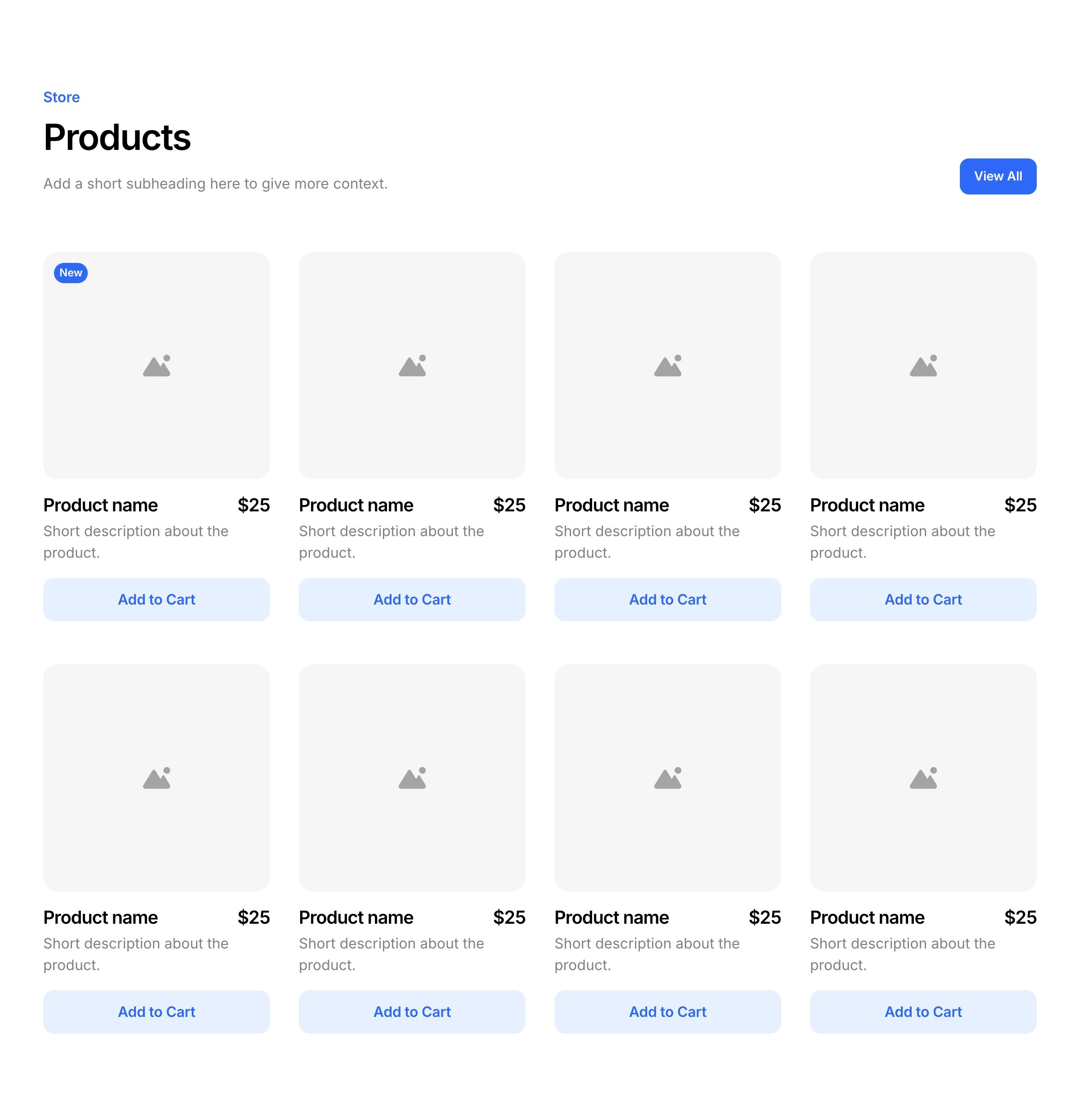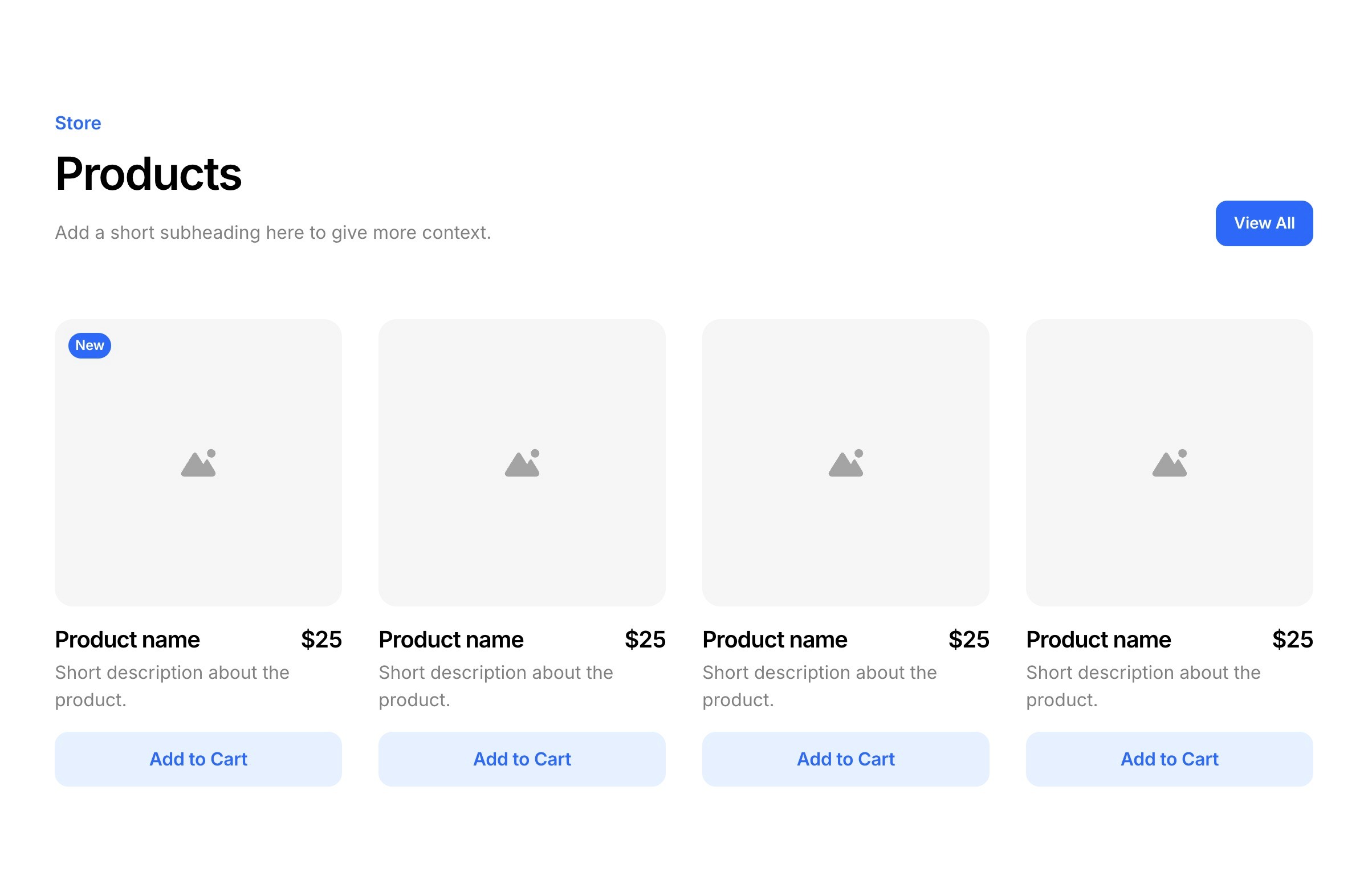 Store sections display a collection of products with pricing and purchase options for visitors.